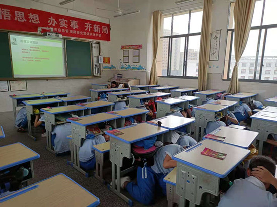 上午9:15,警报声响起,学校立即发出“现在地震来袭,请全体师生紧急避险”指令,学生们在老师的带领下,双手抱头,身体微曲,按照应急疏散路线迅速、有序撤离到操场。