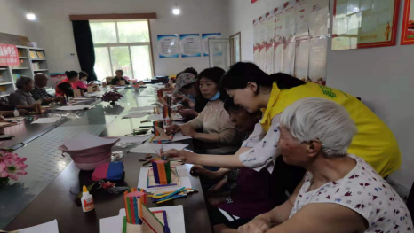看到“五彩的圆筒、整齐的平板、巧妙的支架”,老人们说,“我要在展示板上放我和老伴的照片,和和美美最重要”、“我想在上面写字,写上开心、快乐、健康”、“我要在收获筒里放感谢国家的政策,有好政策才有好生活”... 活动现场气氛活跃。春晓社工对大家说:“今天我们带领大家制作心灵庭院,用五彩缤纷的雪糕棒制作收获筒,大家可以将生活中的收获写下来,放进去。制作展示框,将生活中最美的风景展示出来。将他们放到心灵庭院里,让我们的心灵每天都收获满满、风景美丽”... 一场为提升老年人的生活幸福感、实现老有所乐的活动在欢乐中进行。