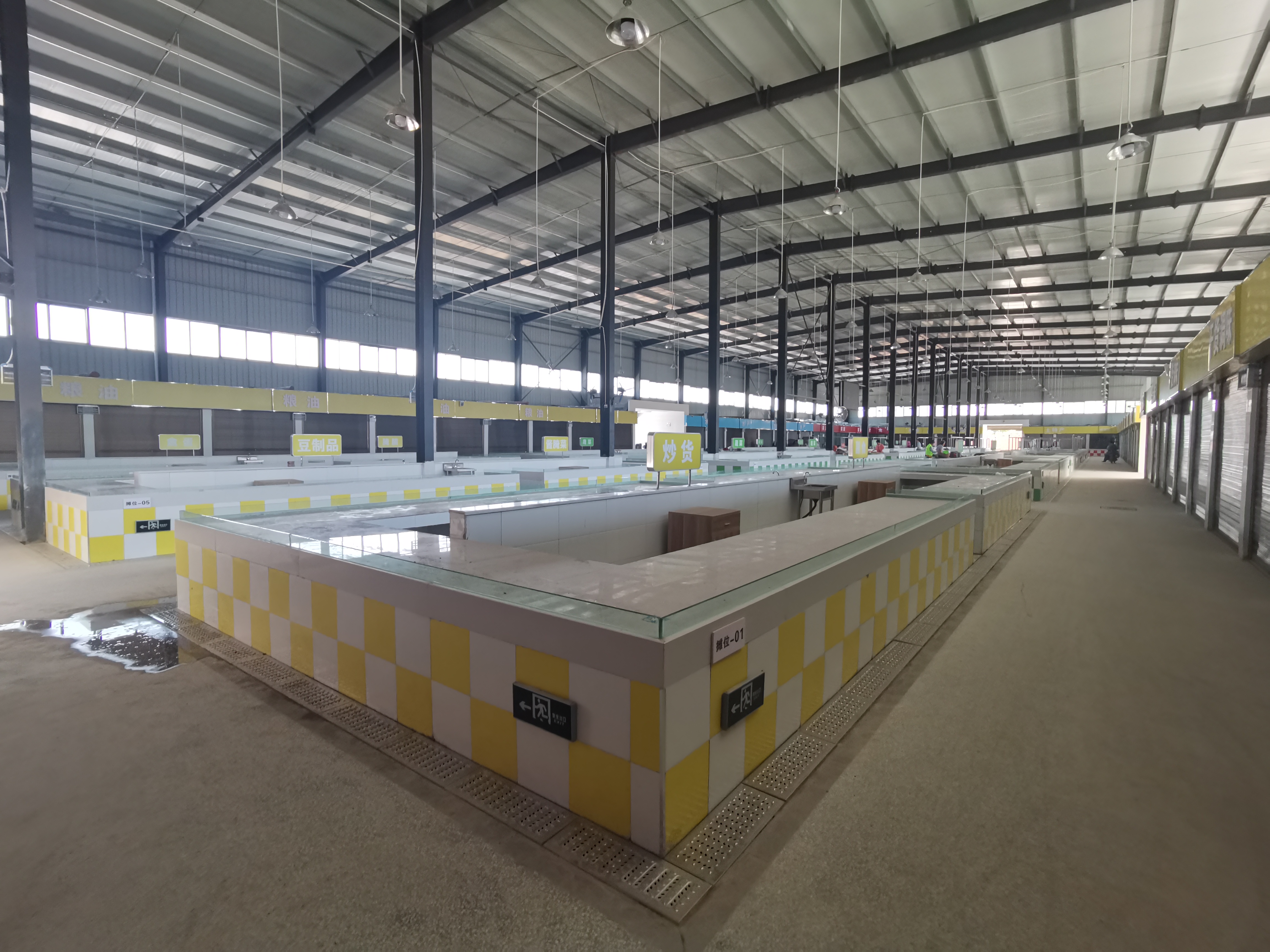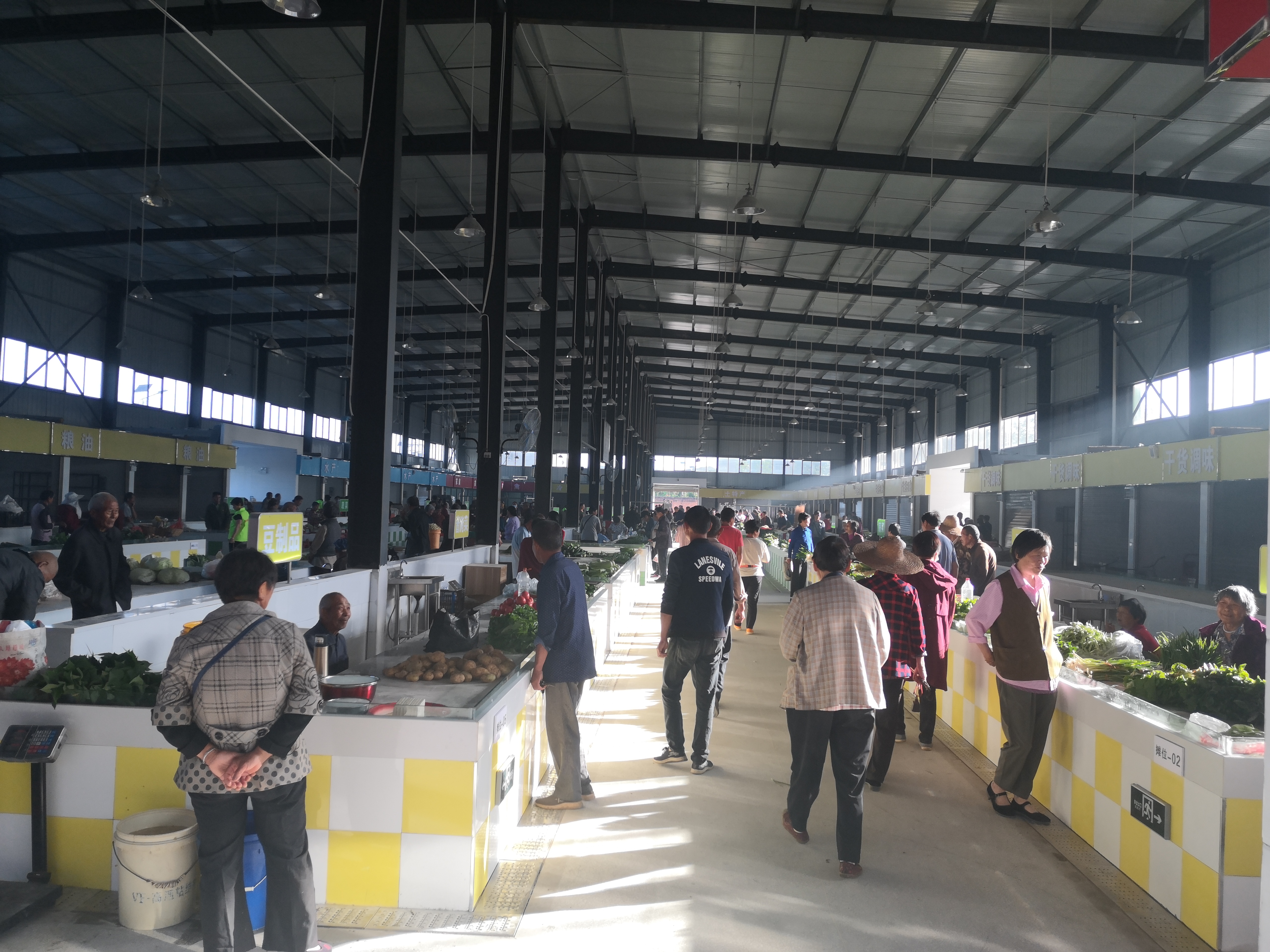 黄龙镇整个集镇商贸经济发达,流动人口多,各类蔬菜、肉类、水产品销售火爆。该镇仅有的农贸市场位于双黄路新建街,修建于1990年,该市场受场地等限制,农贸市场无拓展空间,无法新增摊位,而且市场内路面损坏,中间仅有的一趟遮阳棚是下雨挡不住,风吹“透心凉”,狭窄的空间远远满足不了农副产品供给需求,商户和群众反映强烈。