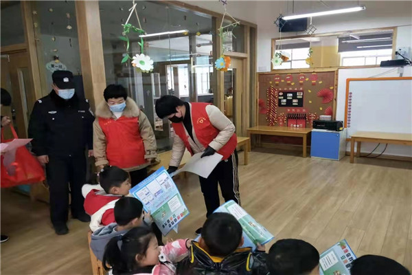 三农电视台安徽讯   寒假即将来临之际,1月19日,安徽省阜阳市太和县城关镇城南社区综治办联合社区警务人员以及社区志愿者组织紧密结合社区疫情防控宣传以及寒假期间青少安全防护宣传,深入到辖区各学校、幼儿园,扎实开展校园安全大检查、校园疫情防护等工作,努力创造安全和谐的校园环境,确保寒假前后少年儿童的居家安全及健康防护。