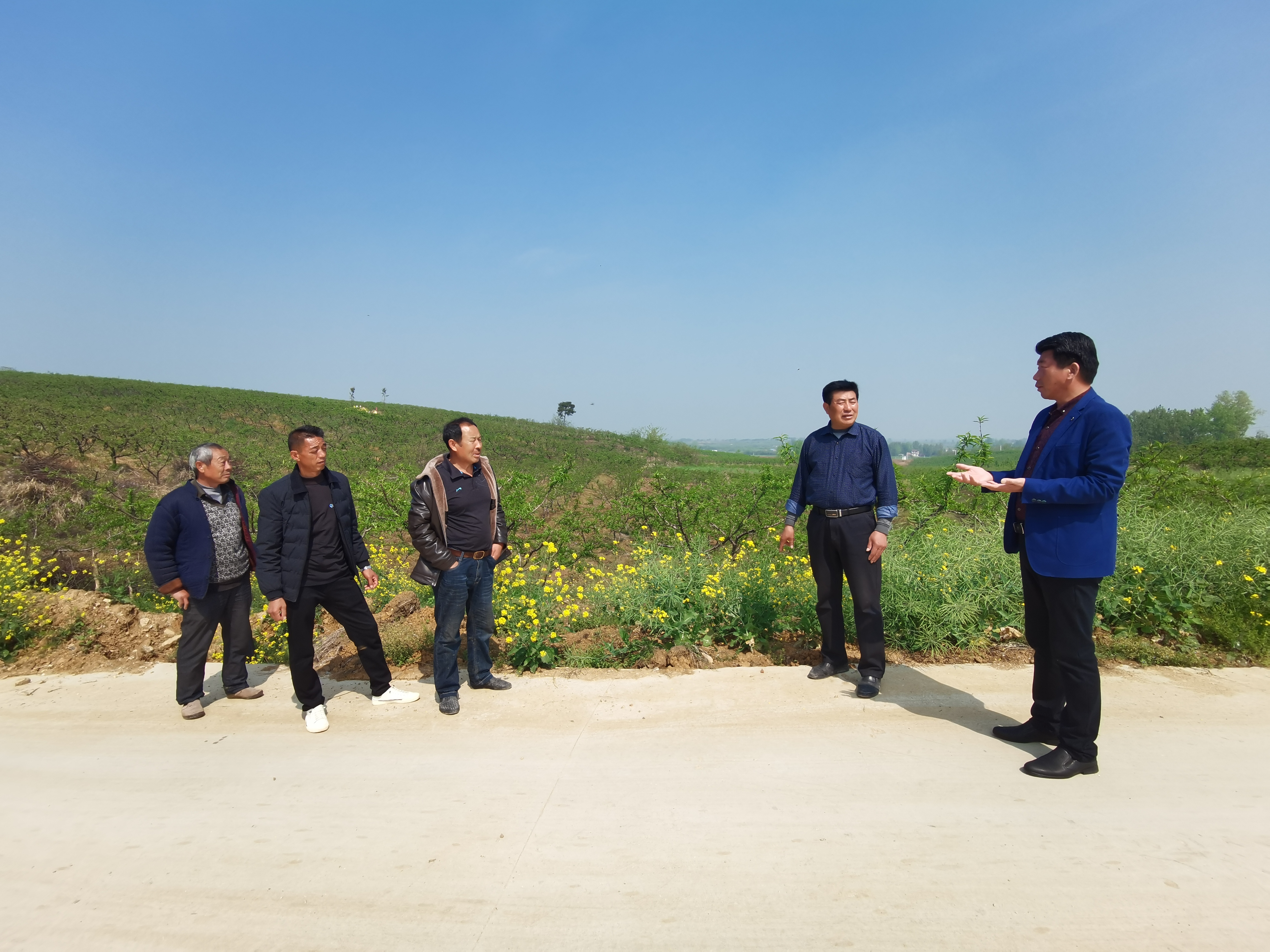 这片桃园曾经是片丘陵岗地,种植农作物年年亏损,看着大片的土地给群众增加不了收入,镇人大主席樊淑功在下乡走访,与群众交心谈心时,有群众随口提出来了。作为镇分管扶贫工作的领导,立即把此事放在心中,亲自到现场看到岗地上参差不齐的农作物和群众期盼的眼神,他看在眼里急在心里,为充分发挥土地效益,帮助群众增产增收。樊淑功把驻村工作队、村两委叫到现场,坐在一起商量解决办法,通过大家讨论,决定邀请相关技术专家到实地检测,看这片岗地上适合种什么作物。通过技术人员抽样检测,发现该岗地适宜栽植桃树。