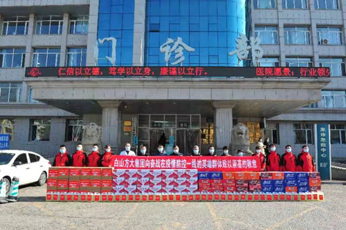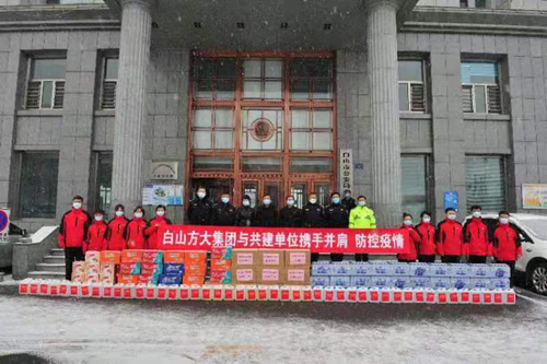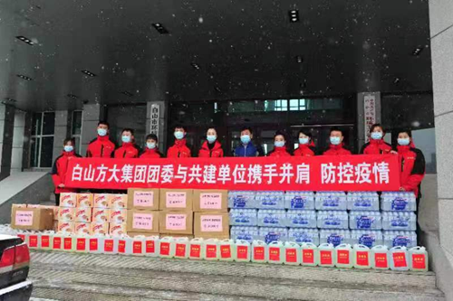 连日来,白山方大集团党委组织党员志愿者、青年志愿者走进市交警支队、市医院、市疾控中心、市公交公司、市环卫处、市公安局红旗分局、街道、社区等41家单位,向奋战在疫情防控一线的英雄群体捐赠了口罩19.6万个、消毒液990桶、方便面760箱、矿泉水680箱、八宝粥550箱、手套2000副。