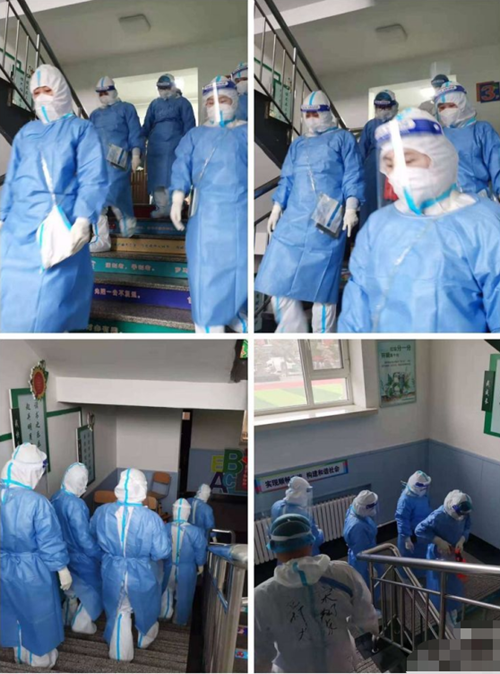 4月6日,在校长孙丽娟的带领下,陈旭辉副校长,刘微副校长,郭丽副校长,教师宋祥友、黄云美、袁鸣、齐鑫、张丽、张靖曼主动请缨,克服困难到学校参与闭环工作,她们每天坚守岗位,分别在东新社区、蓝山社区上岗进行核酸检测,每天检测人次累计5000余人,无论刮风还是下雨他们都日出而作日落而归,大家克服了居住条件艰苦、工作强度大等诸多的问题没有任何怨言。