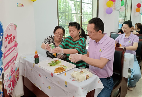 爱心妈妈还和孩子们一起制作美味的鸡肉卷。孩子们在爱心妈妈和家长的帮助下,将亲手制作好的鸡肉卷送给爱心妈妈们,对爱心妈妈这一年来的关爱的表示感谢。爱心妈妈们也把事先准备好的礼物和祝福送给孩子们。