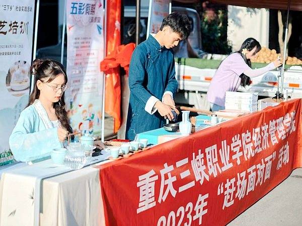 近日,由重庆三峡职业学院经济管理学院11名学生和2名带队老师组成的“理论普及宣讲团”走进万州区孙家镇以“传承茶艺经典,赋能美丽乡村”为主题开展了为期6天的2023年暑期“三下乡”社会实践活动。实践团以传播中华茶文化和展示茶技能为主要内容,结合网络营销与直播电商专业特色,围绕茶艺展示、茶艺培训、网络反诈骗宣传、劳动实践、墙体彩绘、走访调研等主题开展多个社会实践活动。