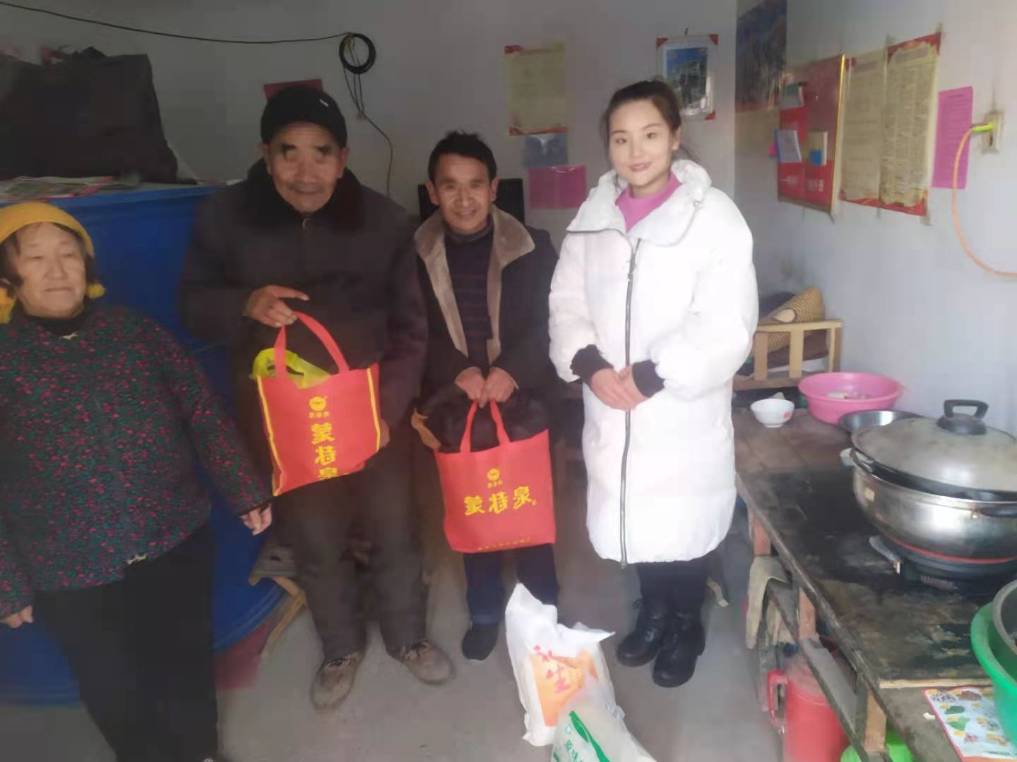 2020年末,作为蒙特泉酒业副总的朱美蓉女士在当地爱心人士的陪同下。到山东鄄城县李进士堂镇盐店村几位困难户进行逐一走访,将过冬物资分发到每个需要人员的手里。当受赠人言语中讲出感谢的词语时,她的眼眶湿润了,一直婉言拒绝谢意。不停的说:这是我们应该做的,每一位蒙特泉人看到都会这样做的,不用谢。