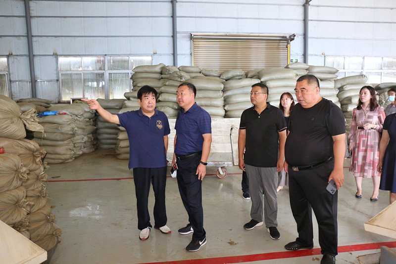 在艾草加工车间,南阳绿莹艾草生物制品有限公司董事长马文晓现场向专家技术组一行汇报企业发展情况,并就艾绒加工车间升级改造后的转变和如何高质量存储加工做了详细的汇报。