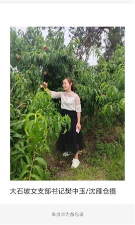 樊中玉日晒雨淋风头山尖上,跑瘦了身子累硬了筋骨,时刻牢记习近平总书记“绿水青山就是金山银山,”在上级同志与职能单位专家帮助下,这位移民后代女支书正在四面八方网内网外协调,要想富宽修路,请桃商的大车双向出进不堵车。以赏桃花,摘红桃,钓龙虾为主打,发展大石坡水利移民当地老乡旅游业,通过招商引资,建农家乐餐馆、露天赏明星月亮听野鸟虫鸣夜宿,吸引外地人到大石坡桃花源休闲观光养生游乐。