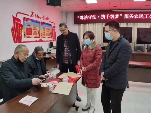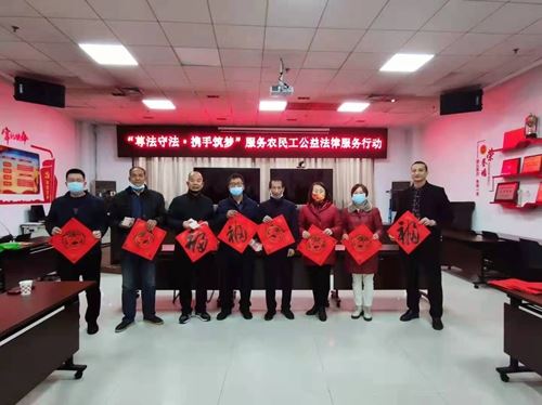 2021年1月21日下午,在宝鸡市总工会会议室,市总工会、市司法局、市律师协会共同为被拖欠工资的农民工代表现场发放了追讨回来的110000元薪金,并赠送了春联,为农民工兄弟送上新春祝福。