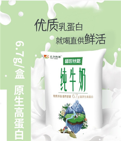云上传祁盛世丝路纯牛奶——盛世中国梦·丝路引传祁。盛世丝路系列产品是传祁乳业将地域文化与特色产品精心结合,打造属于河西走廊的特色产品。每包含6.7g优质乳蛋白与262.0mg原生钙,100%生牛乳,成分健康无添加剂,注重高营养品质,助力健康体质。