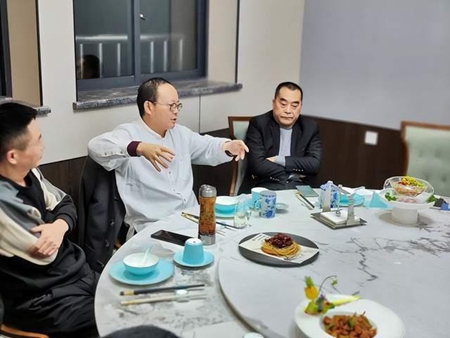 交流结束后,龚永泽董事长在成都市西单商场川派凤甲花园餐厅宴请了各位到场嘉宾,桌上大家谈笑风生、其乐融融、把酒言欢,在一片欢声笑语中迎接新年新气象。