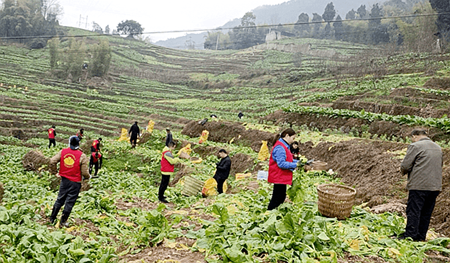 眼下正是青菜头丰收时节。为了让缺失劳力农户的辛勤劳动成果“颗粒归仓”,2月9日,重庆市涪陵区应急管理局华岩救援队队员们来到江东街道朝阳村,帮助当地缺失劳力农户抢收地里成熟的榨菜青菜头。