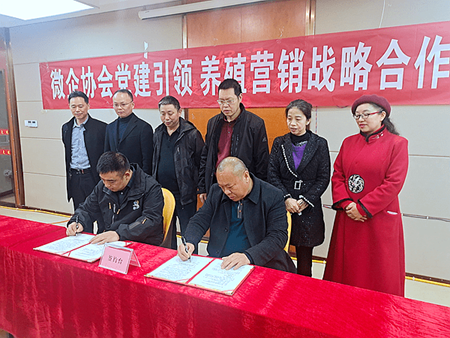 随后,在涪陵区畜牧兽医发展中心副主任黄小林,涪陵区畜牧兽医发展中心饲料兽药科科长张世洪,区农安中心副主任邹强,区微企协会会长王佳容,区微企协会党支部书记傅以伦,区微企协会专职副书记杨玲红及微企协会全体党员、副会长、会员代表等共同见证了《猪牛至无抗生态养殖战略合作协议》的签订仪式。