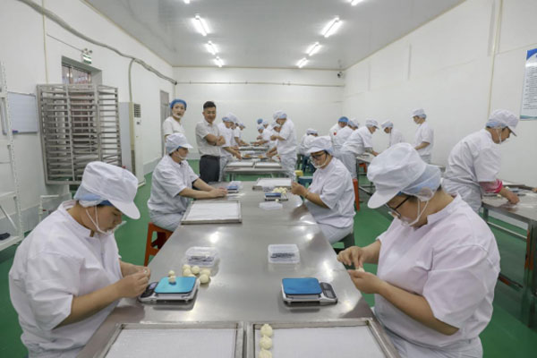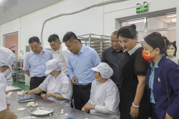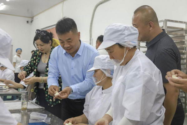 岭泉镇党委副书记 政协联络室主任孙全成、商会预制专业委员会会长 莒南广源食品有限公司总经理路国祥为莒南广源食品有限公司“共富车间”落成揭牌。