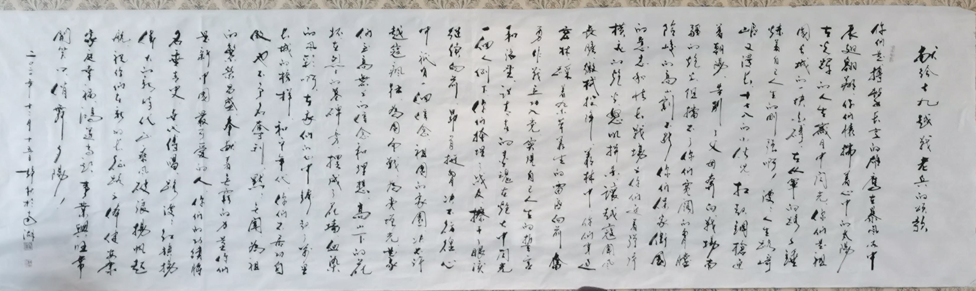 座谈会上,大家缅怀牺牲的战友,畅叙共同战斗的革命友谊,展望未来。参加座谈会的还有,越战老兵,二等功荣立者、见义勇为模范、记者付文龙先生。会后,由拥军模范郑瑞先生宴请大家,诗人书法家王静秋先生也即兴挥毫,赋诗一首,歌颂新中国最可爱的人!