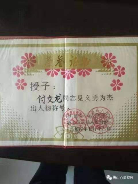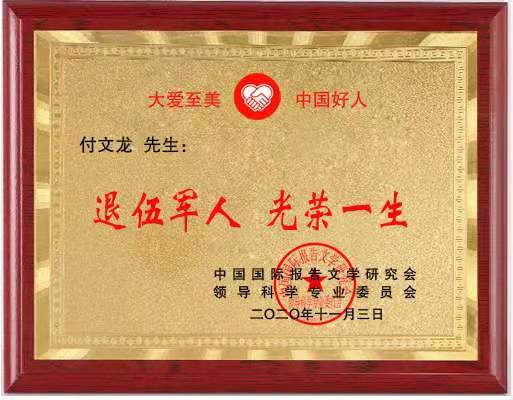 授於付文龙″中国好人"荣誉称号!
