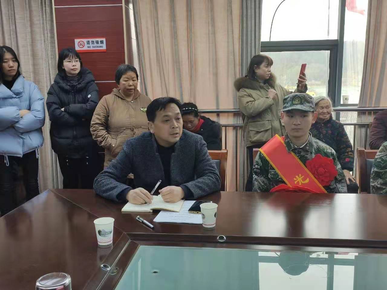 会上,周国剑代表镇党委、政府向5名即将踏上新征程的同志表示热烈的祝贺!向为祖国培养出优秀新兵战士,舍小家为大家的五个家庭表示崇高的敬意!同时,对新兵提出了几点希望:一要树立坚定信仰。始终坚持中国共产党的领导,坚定思想防线,不受西方不良思潮的影响,积极投身强军富国梦。二要提高个人素养。深入学习贯彻习近平强军思想,增长才干,施展才华,努力成为让亲人骄傲、家乡自豪的合格军人。三要加强军事锻炼。新兵到军营后要遵守部队的纪律,尽快适应部队生活,刻苦训练,掌握扎实的军事本领。四要积极融入军队。加强战友之间的交流沟通,既要严肃又要开朗,与战友们打成一片,展示玉山人良好的精神风貌。最后,周国剑祝福入伍新兵在以后的军营生活中一帆风顺,前程似锦!