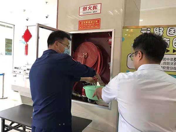 指导过程中,大队执法人员认真细致的查看了该单位消防安全组织机构、制度、责任制的健全、完善、落实情况和巡查、检查记录、相关档案建设情况,重点检查了安全出口数量是否充足,疏散通道是否畅通,疏散指示标志、应急照明、灭火器材等配置是否符合规范、完整好用,电器线路是否符合标准,防火门设置是否符合规范,并对末端试水装置、消火栓和多个防火分区的烟感探测器进行测试。针对存在的问题提出整改意见。