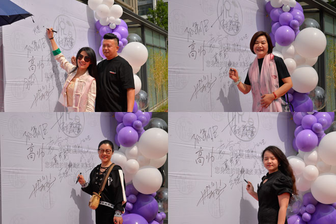 在全体来宾共同见证下,常健医生集团董事长黄金刚、大成健康管理董事长杨春蕾、临沂广播电视台106广播电台总监周伟、都市传媒董事长李宗杰、三昇集团董事长胡守立、巧夺天工红木家具总经理葛芹莉、悦曼国际创始人孙毓阳、悦曼国际创始人李泇萦共同为悦曼国际北城直营店剪彩。