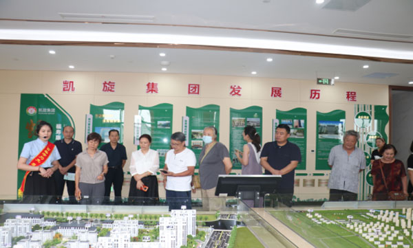 然后,他们驱车来到凯旋集团所属智慧健康养老中心,参观了凯旋高端化、智能化、标准化、生态化高端养老社区的基本情况沙盘、公司发展简况展板、阅览区、活动区、产品展示区和生活服务区、健康管理服务区,并移步凯旋智慧健康养老中心会议室,观看了凯旋集团公司宣传片和“凯旋医养,逐浪放歌”专题片。