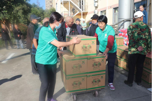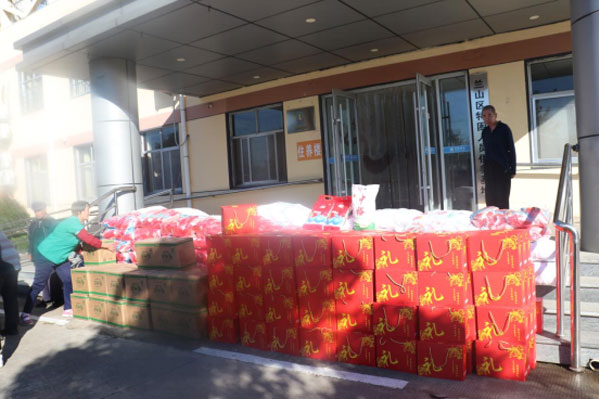 三农电视山东讯:(陈军)为了让住养在临沂凯旋医养健康集团半程、李官、枣园、汪沟、兰山街道护理院的特困集中供养人员过上一个温馨、幸福、圆满的重阳节,让他们感受到党和政府的关心照顾,10月20日上午,由兰山区区委常委、区政府副区长王翠宝带队,兰山区慈善总会会长马学印,副会长杨德胜,兰山区民政局党组书记、局长王桂华,区民政局党组副书记、区社会救助综合服务中心主任姜宇等领导带着米、面、油等慰问品,赶到半程镇社会特困人员集中供养基地,走访慰问兰山区住养人员。半程镇党委副书记、镇长刘世文和临沂凯旋医养健康集团常务副总经理姜开福代表所有集中供养人员接受党委政府的馈赠。