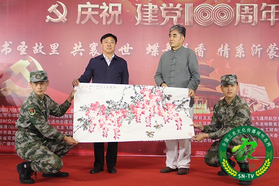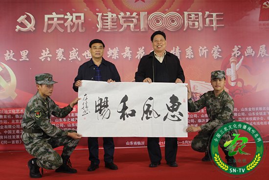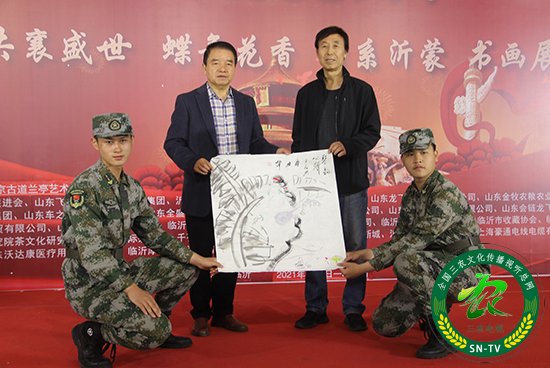 本网山东讯(晓飞) 为庆祝中国共产党成立100周年,由中国行为法学会法治文化艺术委员会和北京古道兰亭艺术馆主办,临沂市中华职业教育社、临沂市爱国拥军促进会、山东飞龙海陆空通用航空集团、沂蒙国防教育学校、兰陵县龙发商贸有限公司、山东龙飞通用航空有限公司、山东金牧农粮农业科技集团兰陵分公司承办,国防时空山东工作站、北京宏通伟业建设集团、山东车之城汽车贸易有限公司 、山东全盛旅游发展有限公司等单位共同协办的“蝶舞花香情系沂蒙”书画展5月1日上午在临沂市文化中心隆重举行。