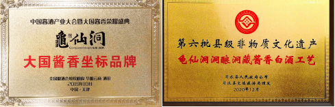 近年来,凭借过硬的品质,龟仙洞荣获“2015布鲁塞尔大金奖”、“大世界基尼斯之最” “大国酱香坐标品牌” 、“华尊奖” 、“非物质文化遗产”等荣誉,在前不久发布的2020中国酱酒品牌影响力TOP100榜单中,龟仙洞位列第32名。拥有众多闪耀光环的龟仙洞,以其独特的酿造技艺,别具一格的绵柔口感,诠释了打造“原生态洞酿第一酒”的初心,满足人民对美酒的诉求。