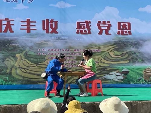 活动现场,农民丰收节喜庆文艺节目小品《我们村里变化大》、歌舞《丰收中国》、歌曲《再唱山歌给党听》、《回到山沟沟里》、广场舞《好日子》等以舞台艺术的形式充分展现长春村人民在中国共产党领导下,改革开放新时期以来农民丰收的喜悦和新农村新风貌,抒发了农民对共产党的热爱。