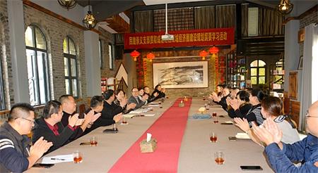 会议由崇义支部主委杜银泉主持。他首先对提供此次学习会议场地的会员企业——涪州书院院长张乔英所做的各项工作表示诚挚的感谢,并就支部年底考核工作作了梳理和安排。