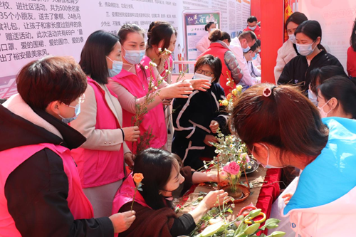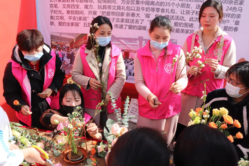 “裕姑娘”巾帼志愿者们用鲜花装扮春天,通过此次插花教学志愿服务,大家不仅能释放压力、放松心情,更感受到了来自妇联“娘家”的关爱和温暖。