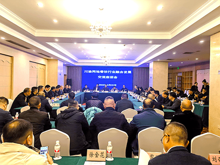 为贯彻落实成渝地区双城经济圈建设相关工作要求,加强川渝两地交流协作,共推川渝两地餐饮行业融合发展。2月20日晚,“川渝两地餐饮行业融合发展交流座谈会”在涪陵太极大酒店召开,来自四川成都、四川眉山、湖南张家界、江苏无锡等地餐饮协会及重庆市餐饮行业协会、市江湖菜发展促进会、江津区、武隆区、黔江区、涪陵区、丰都县、石柱县、垫江县的餐饮界代表齐聚一堂,共话如何推动成渝两地经济圈发展。会议由重庆市江湖菜发展促进会会长曾清华主持。