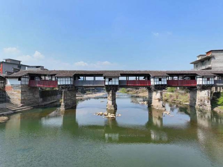 澄波桥位于江西省铅山县湖坊镇的陈坊河上,始建于唐代贞观年间(公元630年),桥长60余米,桥六墩五孔,长60多米,宽4米桥面木质结构,顶部全部盖瓦,挡风避雨。该桥几经修葺至今保持原貌,2000年7月被列为省级文物保护单位。如今该桥仍然还在使用,是江西省目前已知最古老的廊桥。