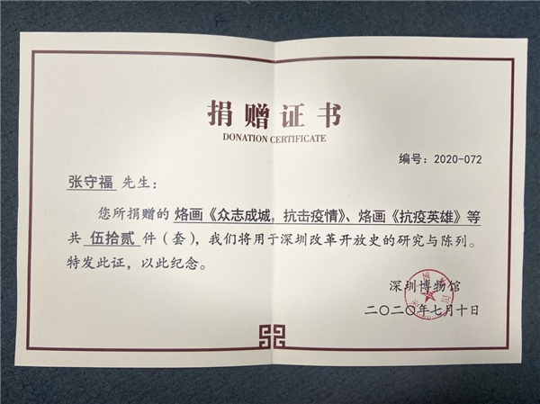 光明区政协委员、烙画协会党支部书记、弘扬烙画负责人张守福表示,非常感谢党和政府给予我们这个荣誉,烙画人将不忘初心、树立奔跑意识,深耕光明,继续努力公益事业,汇聚公益力量,结合自己实际工作,为光明区建设高质量高颜值的世界一流科学城和深圳北部中心贡献更多烙画人微薄公益力量。