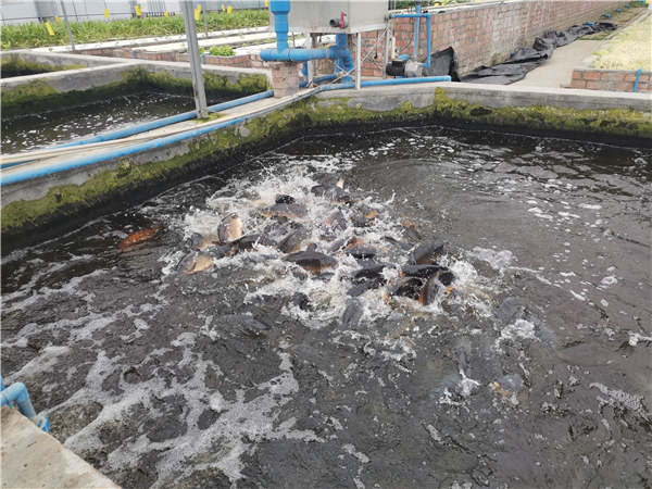 参观完天府农博创新中心园区的陈蓉带领我们来到成都新津区渔耕农业科技有限公司基地。成都渔耕农业科技有限公司在成都新津区兴义镇岷江村二组投资建设的渔耕田鱼菜共生农场已经运营6年多。由于经济效益可观,2017年还做了二期扩建。二期已经建设完毕,目前渔耕田鱼菜共生农场已成为中国最大的鱼菜共生农场。