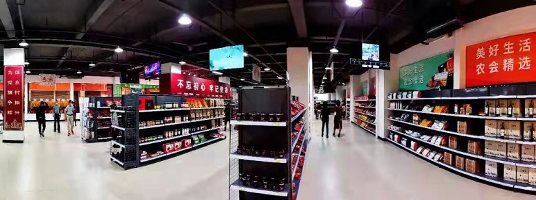 该展销中心占地1500平方米,设有农产品展示、品鉴体验室、网红直播、商务洽谈、多功能会议、办公等功能区。展销来自全国各地的农产品有2000余个品种。