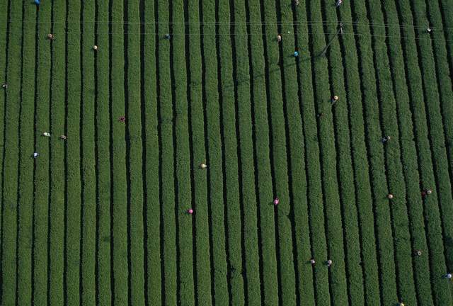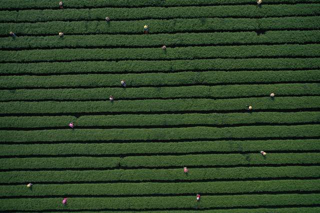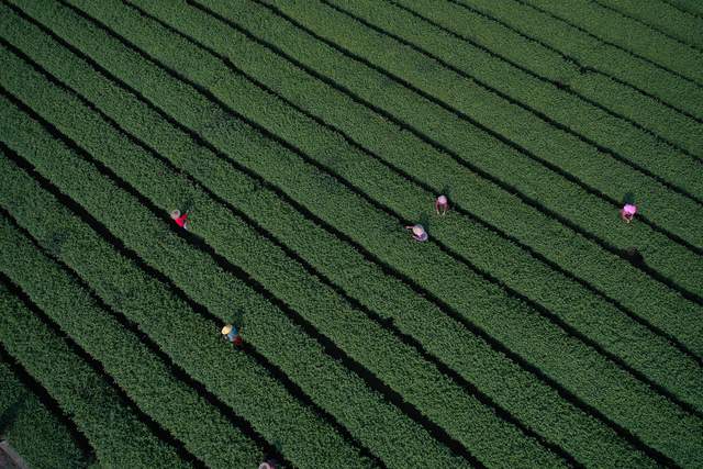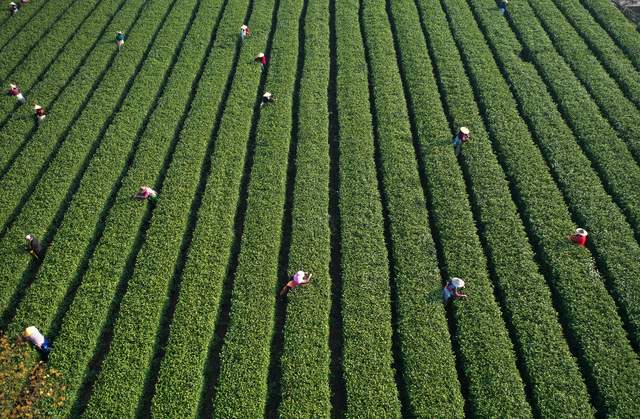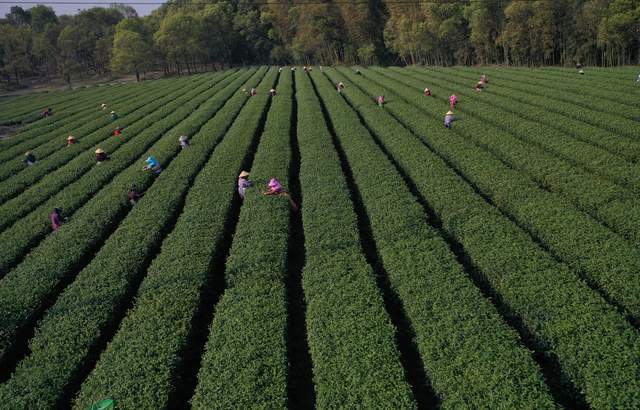 2022年3月14日,随着气温回升,各地春茶陆续开采。这是位于江西省上饶经开区董团乡境内的远泉茶业有限公司茶叶基地,茶农们抓紧时间采摘春茶,忙碌的身影犹如律动的音符,奏响春天的乐章。(艾世民摄影报道)