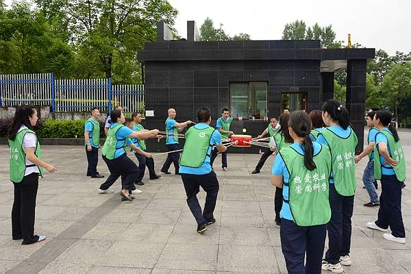 团建活动,在简单的热身分组环节后,正式开启一场欢乐且有意义的团队活动。在教官专业细心、幽默风趣的带动下,全体员工分为5个组,分别进行一系列精彩纷呈的团队趣味集体活动。