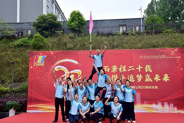 5月21日,“风雨兼程二十载,携手追梦赢未来”为主题的重庆汇科包装有限公司20周年庆典活动圆满落幕。活动上为20年工龄的员工授予了纪念章,优秀征文进行了展示,还为全公司员工开展了一次团建活动。