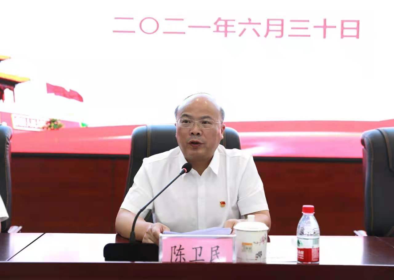 会议开始,全体起立,奏唱国歌,庄严而神圣。歌毕,陈卫民发表重要讲话,他代表该局党委向受表彰的先进集体和先进个人表示热烈祝贺,向教体系统广大党员、干部、教师致以亲切问候和崇高敬意,希望受表彰的先进集体和个人珍惜荣誉、发扬成绩,争取更大光荣;希望教体系统各级党组织和广大党员以先进典型为榜样,学习先进,赶超先进,以更加崭新姿态、昂扬热情、务实作风,锐意进取,真抓实干,努力营造和衷共济、共谋发展的良好局面。同时,他强调三点意见,一是要缅怀历史,牢记使命,进一步增强建设全省教育强县的责任感和使命感;二是要适应新常态,锤炼新作风,切实把党建工作的突破点放在推动教育高质量发展上来;三是要强化思想认识,注重工作合力,努力营造全员抓党建的工作格局。他号召广大党员、干部、教师铭记党的奋斗历程,发扬党的光荣传统,传承党的红色基因,赓续共产党人的精神血脉,不忘教育初心,牢记育人使命,以昂扬的精神状态在建设“全省教育强县”的新征程上披荆斩棘,奋力前行,不断谱写玉山教育高质量发展更加出彩的绚丽篇章。