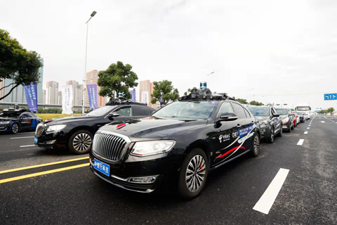 图为中智行公司的车辆参加2021“新四跨”演示。