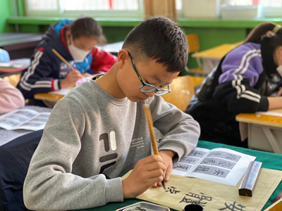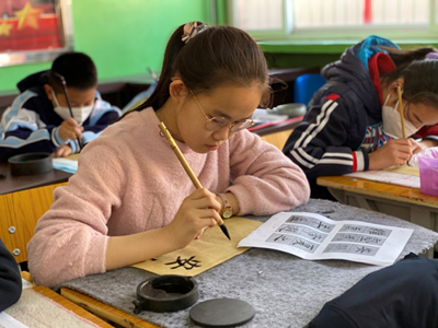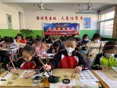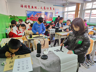 师生落笔纸上,一撇一捺展示汉字之美。一笔一画,点染人间繁花似锦。一张张纸上呈现出的字体优美流畅,犹如一串串美好的音符,和着淡淡的墨香,令人陶醉其中。