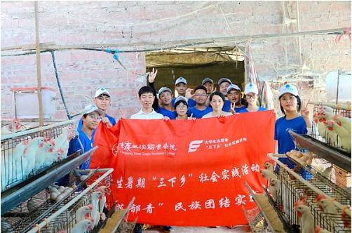 乡村振兴离不开产业振兴,实践团成员来到当地土家族养鸡大户周菊花的养殖场,进行了学习和交流。周菊花亲切的说到:“感谢党对少数民族地区的关怀,原来她家还是出了名的贫困户,是国家给政策、给资金支持才让她家能把养鸡事业搞得这么红火”。聊着聊着就到了鸡群集中产蛋的时间,实践团成员们看着满满的产蛋栏,个个跃跃欲试,手持装蛋夹,忙碌地捡拾着鸡蛋,体验了一把养殖大户的“快乐”。据了解,周菊花一家三口经营的养鸡场,一年能给她家带来约50万元的收入。