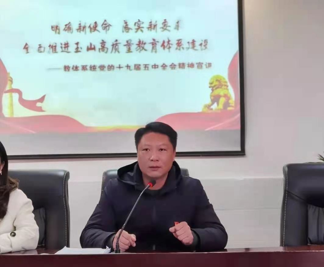 宣讲中明确要求,要坚持党的全面领导,扎实做好“十四五”时期玉山教育工作,建设玉山高质量教育体系,我们必须把加强党对教育工作的全面领导作为第一关键;必须把全面落实立德树人根本任务作为第一要务;必须把系统推进各学段发展作为第一抓手;必须把全面提升教育服务贡献能力作为第一追求;必须把加快推进教育治理体系和治理能力现代化作为第一法宝;必须把加快推进体育事业特色化发展作为第一支撑。