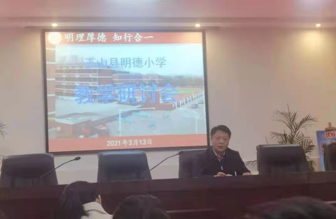三农电视台江西讯(王义东 周淑娟)3月13日下午,江西省玉山县明德小学在新时代文明实践活动中心召开了主题为“明确目标 砥砺前行”教学研讨会。参加此次会议的有邱才泽校长,陈礼燕副校长等校领导,“两语一数”素养班辅导教师及六年级所有教师。会议由陈小丽副主任主持,分七个议程进行。
