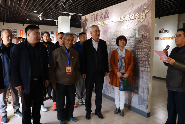 拥有72年党龄的89岁李化璟馆长给大家介绍了井陉县洪河漕百团大战前线指挥部纪念馆的情况,并带领大家参观了展馆,讲述了聂荣臻元帅精心护理两个日本小姑娘、并派人送到日本兵营的故事。聂帅大仁大慈的革命人道主义精神令人钦佩,被中外广为传颂。该纪念馆先后被授予石家庄爱国主义教育基地、河北省国防教育基地、河北省中共党史教育基地和河北省爱国主义教育基地。
