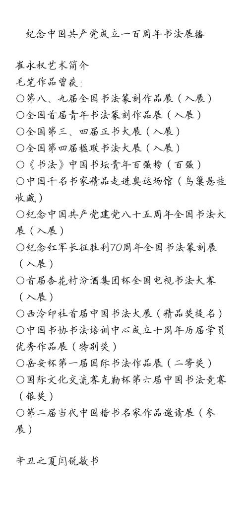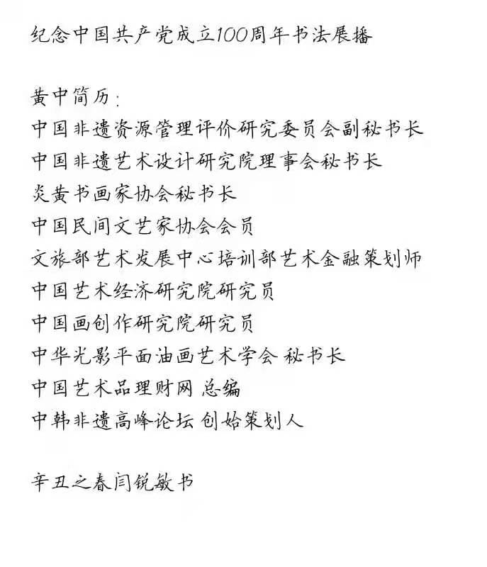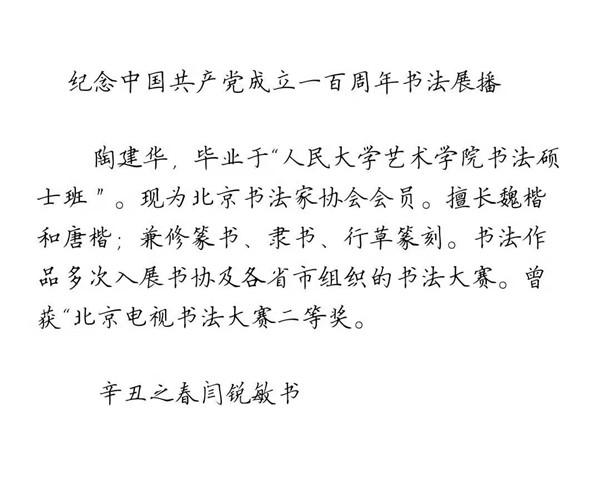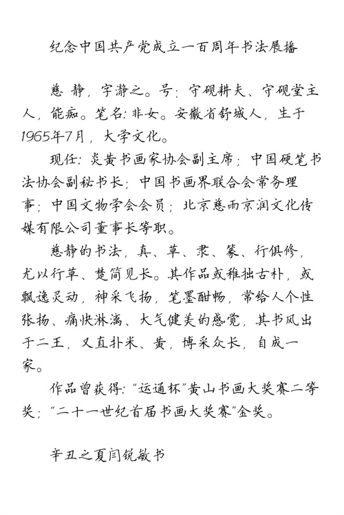 炎黄书画家协会纪念中国共产党成立100周年书法邀请展