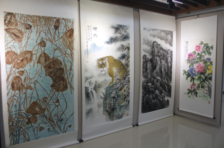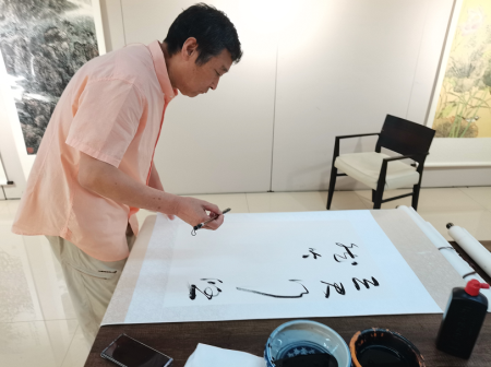 三位画家也分别致答谢词,楼意更是为大家讲解了“山君悠然”这个名称的由来,即俞志和的“山”水画和张珺的“君”,山君同时是老虎的别称,而楼意正是以画虎出名。悠然则展现了画家们对生活、对艺术的一种态度,表示他们不忘艺术初心,悠久而依然行走于艺术道路上。