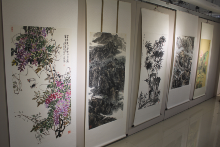 主持人现代画院副院长兼秘书长倪郡阳。中国书法家协会会员、回宫格创始人杨为国作为著名书法家,更是三位画家的好友,他从书画艺术对自然、对生活的表现方面进行了精彩的点评。著名人文学者、香港作家、资深媒体人王明青教授针对本次画展,从文化传承和艺术推广的角度娓娓道来,以颇具人文情怀的言语赢得了来宾的喝彩。浙江省慈善联合总会书画联谊部部长曹顺元在致辞中,也介绍了浙江省慈善联合总会近期正在进行的慈善书画拍卖方面工作。浙江现代画院的另两位艺术家——著名拍卖师张嘉法和中国美术导报总编胡玉宝也分别作了精彩致辞。浙江现代画院常务副秘书长倪大龙代表现代联合集团和章译匀董事长对三位老师举办画展表示祝贺,并且从参展作品中,他能深深体会到艺术家们对生活的热爱和对中国共产党的崇敬。