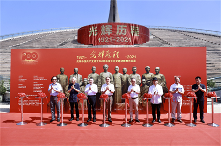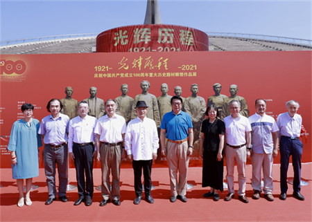 为庆祝中国共产党建党100周年,于2021年7月8日上午在北京中华世纪坛美术馆隆重举办“光辉历程——庆祝中国共产党成立100周年重大历史题材雕塑展”开幕式,展览展出了中国共产党从1921年至2021年建党一百年以来的重大历史事件、历史人物、革命英烈等表现中国共产党领导中国人民为中华民族伟大复兴英勇奋斗的重大历史题材雕塑作品。作品有表现中国共产党成立的群雕《一大代表》,表现中国人民解放军建军的《八一南昌起义》,表现中国革命重要历史转折点的《遵义会议》,表现红军长征的《湘江战伇》、《红军长征过阿坝》、《红军长征胜利会师》和《红军长征胜利会师的指挥者们》,表现抗日战争时期《狼牙山五壮士》,表现解放战争时期人民支援前线的《支前》,表现女英雄刘胡兰的《生的伟大、死的光荣》,表现抗美援朝时期的《邱少云》,表现新中国成立的《开国大典》,表现党的好干部人民的好书记《焦裕禄》,表现改革开放的《开放的春天》,表现为新时代社会主义建设努力奋斗的《劳动者之歌》等等。这些重大历史题材雕塑作品是清华大学美术学院雕塑艺术研究所所长王洪亮教授及创作团队用近二十年时间倾尽全力精心创作的雕塑作品。这些历史题材雕塑作品思想精深,艺术精湛,技艺精良,语言丰富,有思想、有筋骨、有温度,有中华民族优秀文化精神和中国气派的历史题材雕塑作品,用可视的雕塑艺术形象谱写中国共产党百年光辉历史,用雕塑艺术使中国共产党光辉历史成为历史的永恒。这些雕塑己经在建党九十周年和建党九十五周年分别于中国国家博物馆和中央党校成功举办光辉历程历史题材雕塑作品展,2021年在中国共产党建党一百周年之际于北京中华世纪坛举行光辉历程——庆祝中国共产党成100周年重大历史题材雕塑作品展,将更系统更全面的展示中国共产党的百年辉煌。