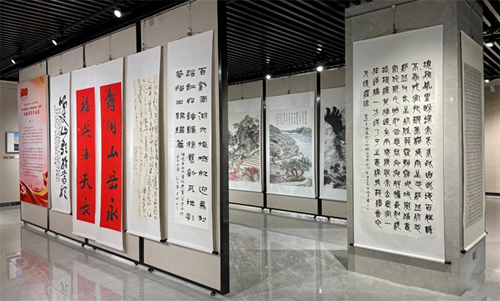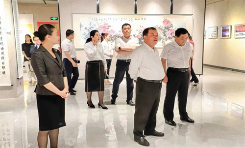 随后,县委书记陈旭升带队参观书画展并给予参展作品高度评价。
